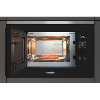 Las características de este microondas de encastre Whirlpool: color acero inoxidable. Función Gill. JetDefrost para una descongelación extraordinariamente rápida y homogénea.