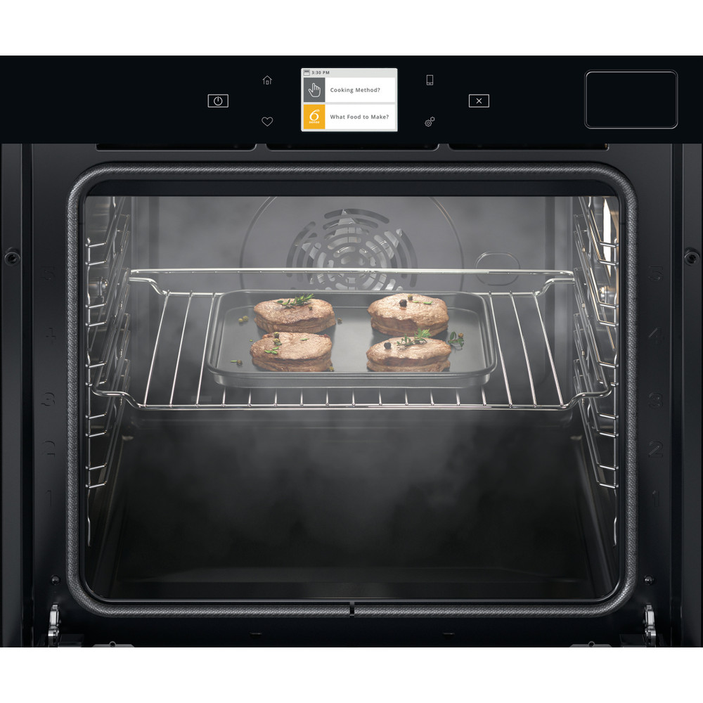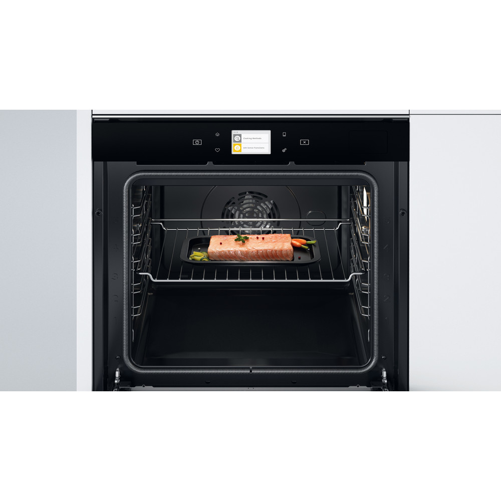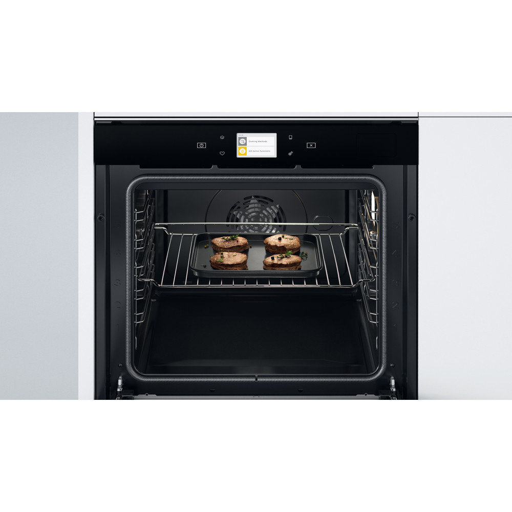 Con el objetivo de adaptarse a las necesidades de los usuarios y de simplificar sus tareas al máximo obteniendo los mejores resultados, Whirlpool ha creado esta innovadora gama W Collection basada en la conectividad de sus aparatos, gracias a la tecnología de sensores 6th Sense exclusiva de la marca. De este modo, el usuario no solo podrá comunicarse con sus electrodomésticos a través del móvil, sino que la conectividad va un paso más allá: los diferentes electrodomésticos pueden memorizar la rutina del usuario y adaptarse dinámicamente a sus necesidades cotidianas. Conéctate a la aplicación 6th SenseLive y explora las infinitas posibilidades que tendrás en la cocina. Gracias a las recetas personalizables y los tutoriales interactivos. 6th SenseLive ayuda a ahorrar tiempo y a preparar mejores recetas, más saludables y personalizadas a través de la integración con el perfil de usuario, horarios e información sobre el estilo de vida. Sugerencias de recetas personalizadas, recomendaciones únicas para comidas familiares, modificación de recetas y personalización, creación de receta. Horno multifunción con conectividad. Horno de vapor. Horno libre instalación de 60cm. Control remoto con la App 6th Sense Live. Conexión Wifi. Pantalla TFT. Control táctil. Horno pirolítico: autolimpieza pirolítica. Capacidad extraordinaria de 73 litros. Cavidad XXL. Clasificación energética: Clase A+. Cristal negro y iXelium. 6th Sense: hasta 40 combinaciones de cocinas diseñadas para adaptarse a su estilo de vida y dieta, para una cocina totalmente asistida. Función Cook3: cocina varios platos sin mezclar olores. Función Ready2Cook: sin necesidad de precalentar el horno. Softclosing: cierre lento de la puerta.
