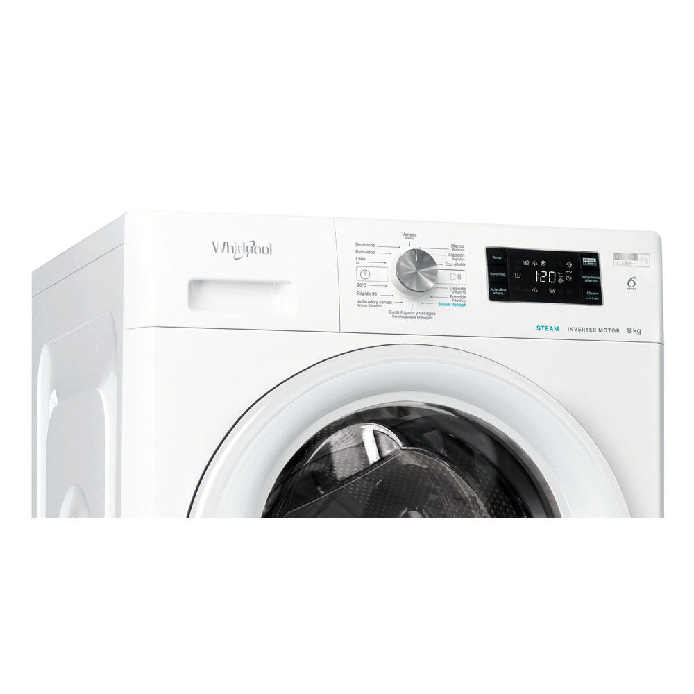 Las características de esta lavadora de libre instalación Whirlpool: color blanco. Capacidad espaciosa de 8,0kg. Clasificación energética B. Rápida y eficiente velocidad de centrifugado de 1200 revoluciones por minuto. Tecnologia exclusiva 6th SENSE, que dinámicamente ajusta los parámetros según el tipo de carga, asegurando el máximo cuidado para tus prendas.