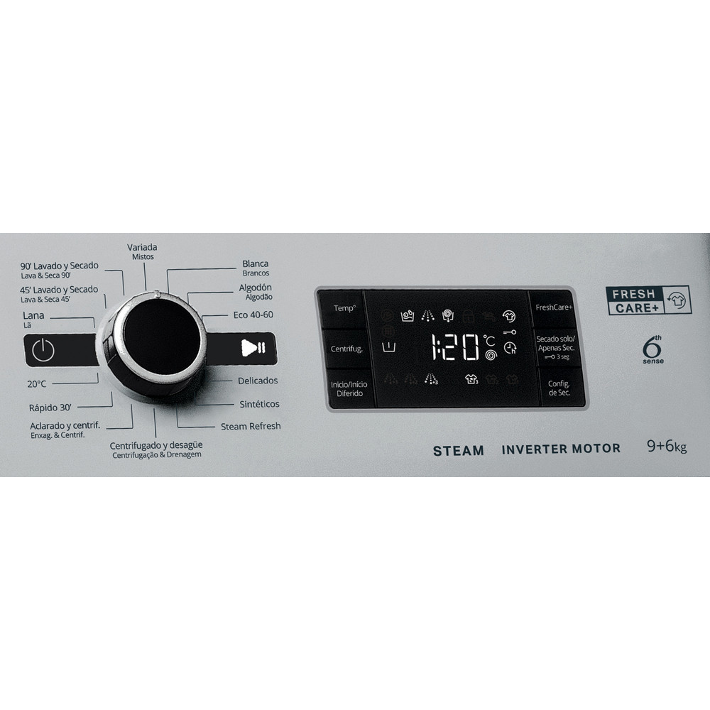 Las características de esta lavasecadora de libre instalación Whirlpool: color silver. Extraordinaria capacidad de lavado de 9,0kg Gran capacidad de secado de 6,0kg. Exclusiva tecnología 6th SENSE que constantemente monitoriza la humedad en el tambor, protegiendo tu ropa y garantizando perfectos resultados de lavado y secado. Rápida y eficiente velocidad de centrifugado de 1400 revoluciones por minuto.