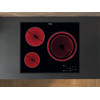 Placa vitrocerámica de 60cm. con 3 zonas de cocción de diferentes diámetros. Máximo diámetro: 28cm. 9 niveles de potencia. Potencia máxima: 6.2kW. Mandos táctiles. Temporizador: la encimera se desconectará automáticamente, pasado el tiempo que hayas programado. Bloqueo de seguridad. Indicador de calor residual para cada zona. Acabado sin marco.